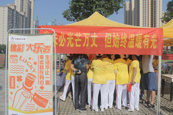 在田径场外,常德市体彩分中心还开展了以“每注善举 ﻪ温暖如光”为主题的“体彩嘉年华”活动,设置了体彩产品展示区和活动互动区等展区,开展与90后新公益思潮相框合影转发朋友圈即赠送顶呱刮彩票、扫一扫转发有礼等活动,吸引了现场观众的热情参与。