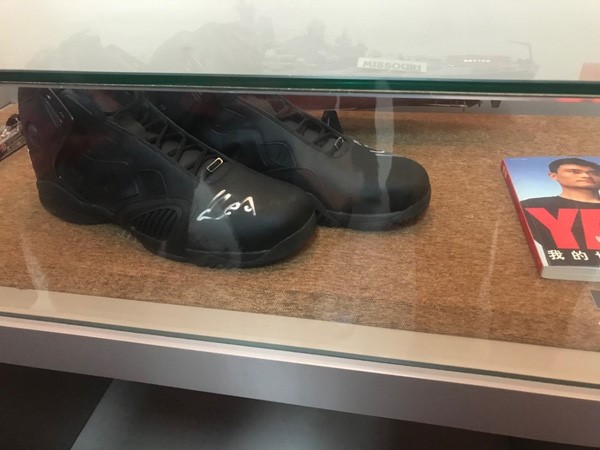 17岁的藏族小姑娘尕让准在陈列着姚明战靴的展示柜前驻足,不肯离去,一直在思索着什么。