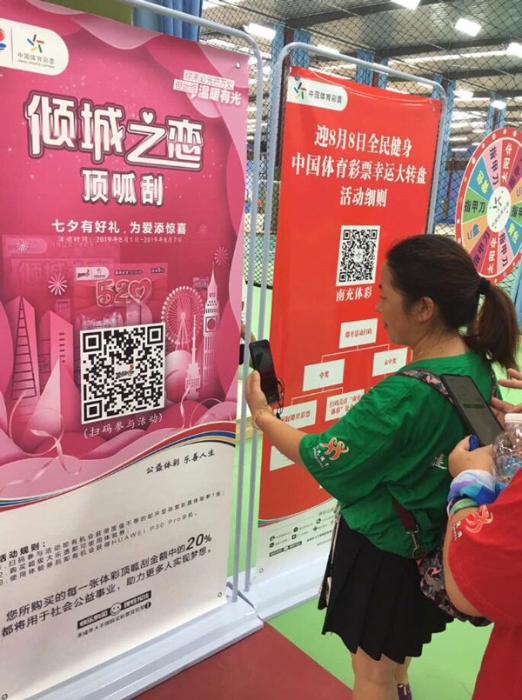 在体彩地推活动现场,大家纷纷驻足观看体彩公益金宣传展示,举起手机扫码参加各种互动游戏,对赢得的小礼品爱不释手。