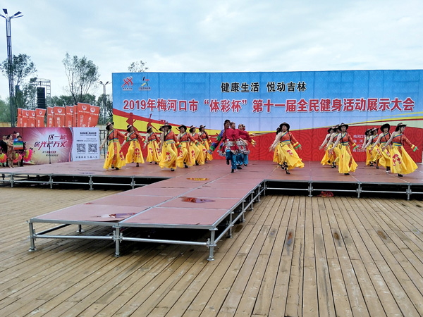 活动由梅河口市社会体育指导员协会秘书长苗文婷致辞并宣布开幕。此次活动共有25支代表队700余人参加了健身舞、健身操、广场舞、太极拳、东北大秧歌等群众健身项目的表演。