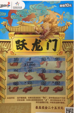 跃龙门即开票系10元票,玩法简单,最高奖25万元。刮开覆盖膜,如果出现龙标志“