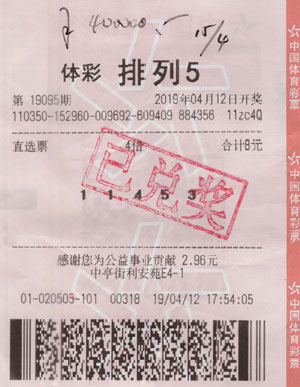 4月12日傍晚,来自福州的冯先生正好路过了福州台江区中亭街利安苑E4-1的20505体彩投注站,偶尔会投注体彩排3和排列5的他突然来了兴致,便进店购彩。还没两分钟的功夫,他便选好了号码,花了10元投注1注单排列3和4倍单式排列5。结果幸运中得第19095期排列3的千元奖和4注10万元的排列5。在省体彩中心,他共计兑走了40万元奖金,幸运得让人羡慕。