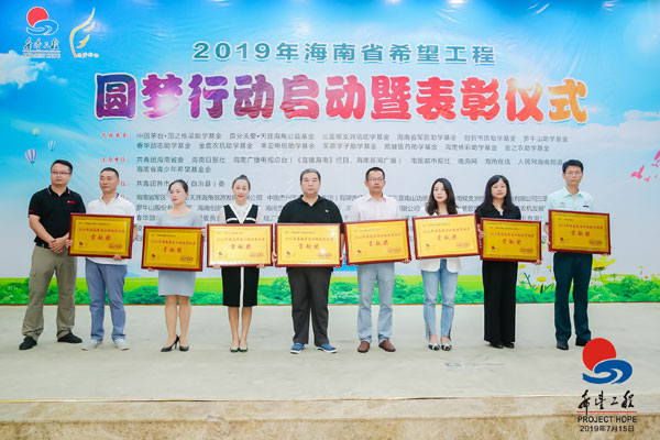 7月15日下午, 2019年海南省希望工程圆梦行动启动暨表彰仪式在海口举行。仪式现场,海南省体育彩票管理中心等爱心单位被授予“2018年海南省希望工程脱贫攻坚贡献奖”。同时,为了支持2019年海南希望工程脱贫攻坚工作,帮助家庭贫困子女解决上大学难的实际问题,海南体彩在仪式现场捐赠20万元,持续助力海南省希望工程圆梦行动这一惠民工程。