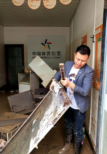 7月7日到9日,萍乡遭遇百年一遇的强降雨,一时间暴雨漫城,全城被淹,市县区发生特大洪涝灾害。市区和湘东区近30个体彩门店在滚滚洪流中受灾严重。