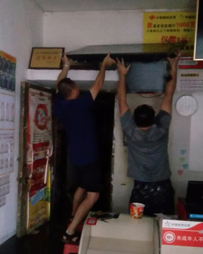8:20,号召附近的工作人员紧急前往地势较低、涨水严重的市区青山南路,协助该地段所有体彩门店转移销售终端、即开型彩票及店内财产等。中心工作人员无论远近,均自发冒着暴雨前往协助。由于路段积水较深,设备无法运出,只能将之尽量放在门店最高处,等水退后立即进行检测修理。