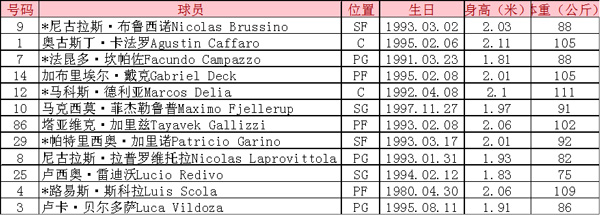 (注:阿根廷男篮目前已确定12人名单,标*者为预计首发球员。)