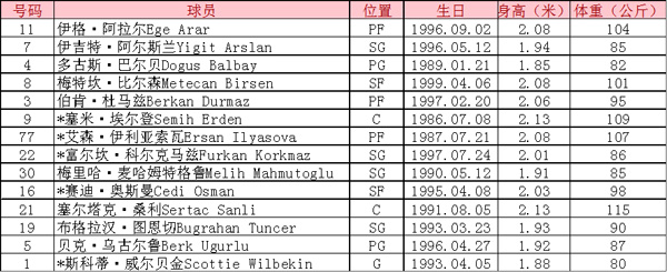 (注:土耳其男篮目前名单14人,还需裁掉2人,标*者为预计首发球员。)