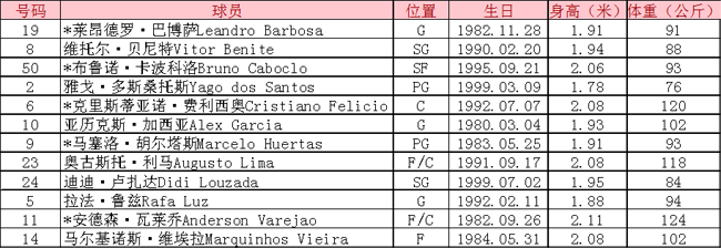 (注:巴西男篮已经公布12人名单。标*者为预计首发球员。)