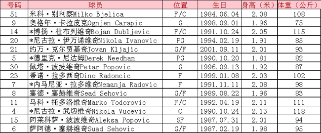 (注:黑山男篮现有14人名单,还需要裁掉2人。标*者为预计首发球员。)