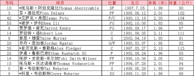 (注:新西兰男篮现有14人名单,还需要裁掉2人。标*者为预计首发球员。)