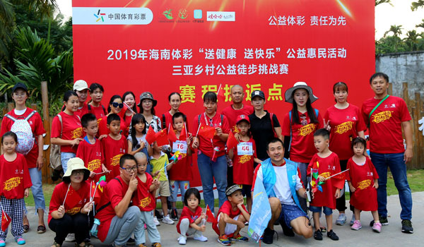 9月21日,2019年海南体彩“送健康,送快乐”公益惠民活动暨三亚乡村公益徒步挑战赛在三亚大茅远洋生态村举行,50组家庭近150名市民参与。