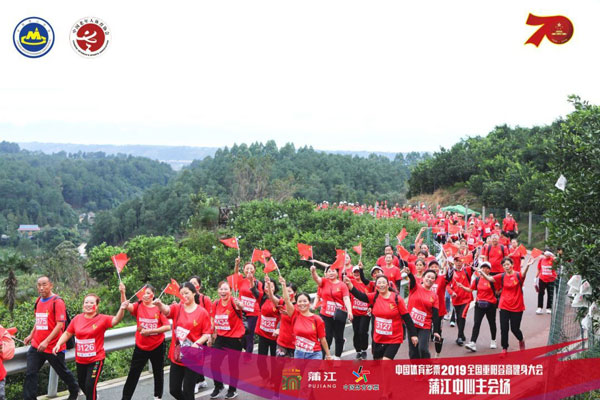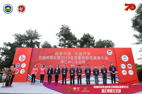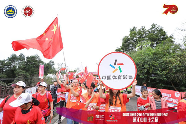 10月7日,举国欢庆中华人民共和国成立70周年之际,恰逢我国尊老敬老的传统节日重阳节,中国体育彩票2019全国重阳登高健身大会中心主会场活动在四川成都市蒲江县举行,人们通过登高远望与祖国同乐,为祖国庆生。