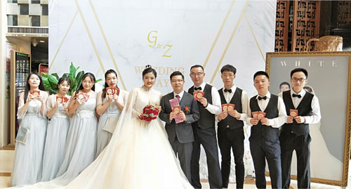 虽然十一国庆节彩票休市,但正好是喜宴的高峰期:国庆七天假,湖北省共有43对新人申请了湖北体彩的喜宴征集活动,这也意味着近百名湖北体彩人化身“祝福使者”:为新人们准备礼物、布置场景、送上祝福……