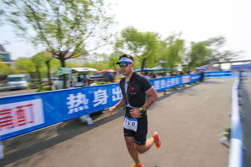 游泳赛段在平水桥浴场进行,参赛选手换项后,经由东经路、东二路、东海滩路、中海滩路进行6圈骑行后,最后沿西海滩路折返,进行4圈跑步赛段,最后回到平水桥浴场展开冲刺。最终,来自北京群英俱乐部的党琦率先到达终点,以2小时1分58秒的成绩夺得男子40至49岁冠军。