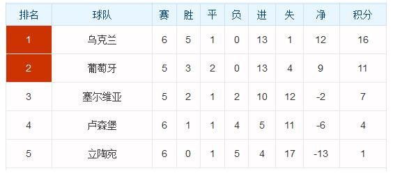 B组的欧洲杯卫冕冠军葡萄牙将客场挑战小组领头羊乌克兰。对于只领先第三名塞尔维亚4分的葡萄牙来说,这是一场相当关键的比赛。而乌克兰在前6轮拿到16分之后,已是无限接近小组出线;同样身处B组的立陶宛和塞尔维亚也将在本周一展开较量,弱旅立陶宛6轮积1分已提前出局,而排名小组第三的塞尔维亚还要为出线奋战到底。