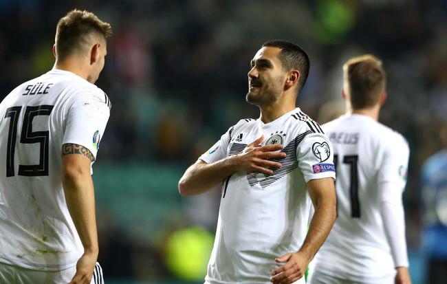 北京时间10月14日2时45分(爱沙尼亚当地时间13日21时45分),欧洲杯预选赛C组在塔林开始1场较量,德国客场3比0胜爱沙尼亚,与荷兰同积15分。埃姆雷-詹开场14分钟被罚下,罗伊斯中楣。下半场,京多安梅开二度并助攻替补出场的韦尔纳破门。
