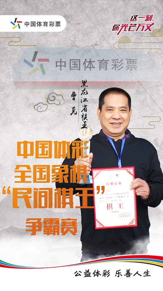 经过激烈角逐,来自绥化的曹克获得黑龙江省级体彩棋王争霸赛的冠军,他将代表黑龙江省出征“全国棋王争霸赛”。亚军和季军分别由来自哈尔滨的王涛和伊春的荣守军获得。