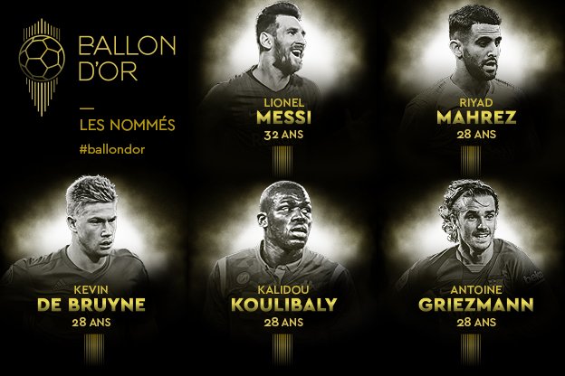 梅西(巴塞罗那/阿根廷),马赫雷斯(曼城/阿尔及利亚),德布劳内(曼城/比利时),库利巴利(那不勒斯/塞内加尔),格列兹曼(巴塞罗那/法国)